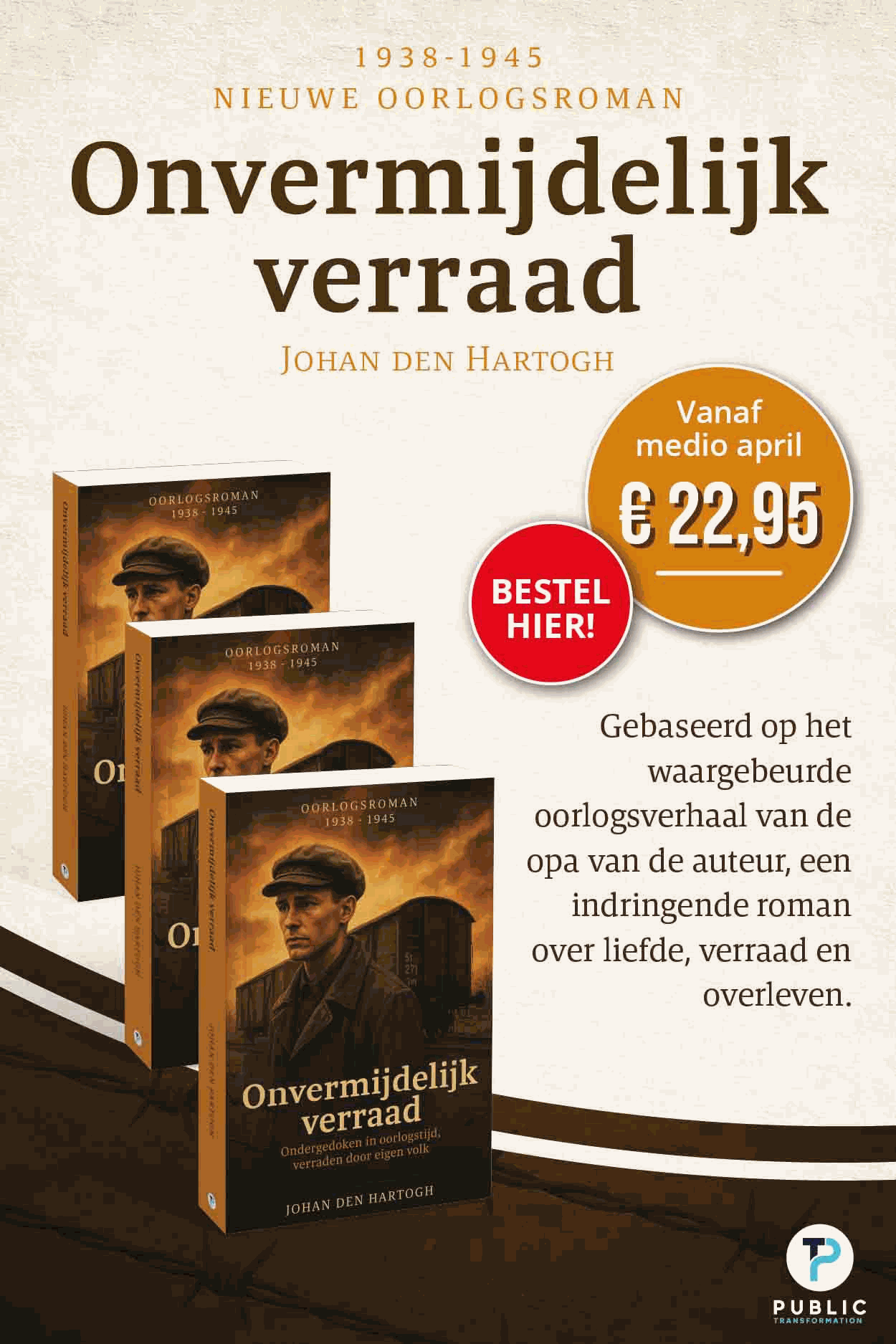 Onvermijdelijk Verraad vertelt een echt familieverhaal en maakt de Tweede Wereldoorlog persoonlijk en dichtbij. Je beleeft de oorlog door de ogen van gewone mensen, waardoor geschiedenis invoelbaar wordt en niet alleen een verhaal uit boeken blijft. De roman is geinspireerd op een getypt document van de opa van de auteur.